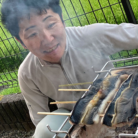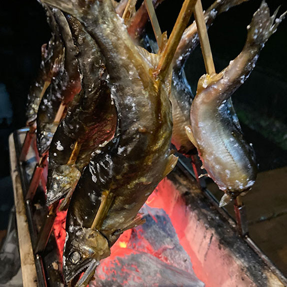 得意技アユを七輪で美味しく焼く
